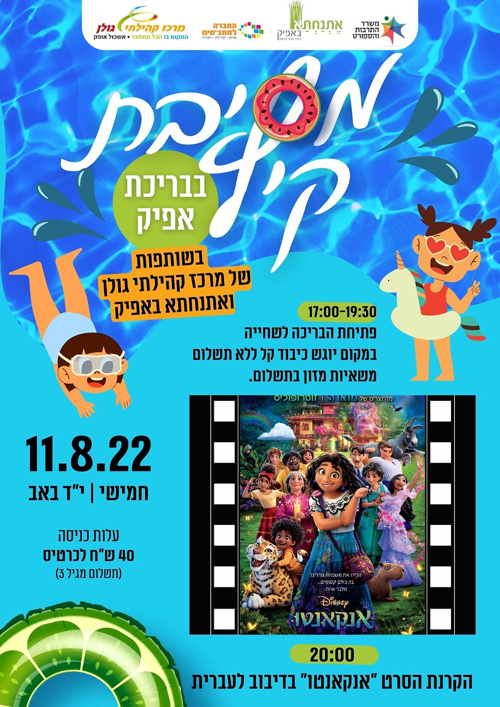 11.8 יום חמישי הפנינג משפחתי בבריכה באפיק לרכישת כרטיסים: https://mkgolan.co.il/events/181/