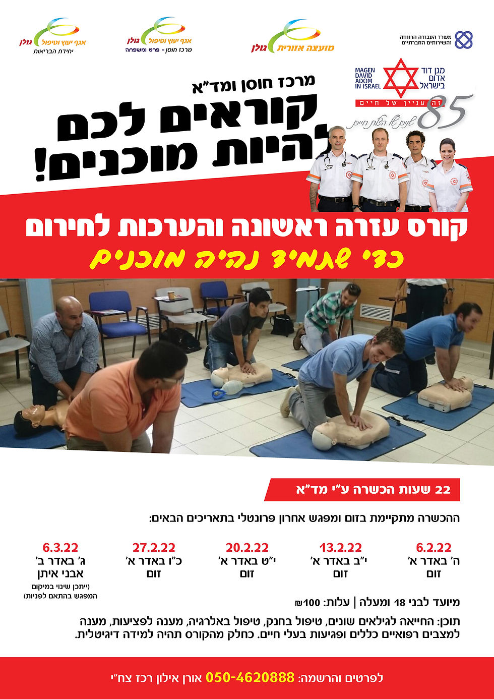 הנכם מוזמנים להשתתף בקורס נאמני עזרה ראשונה, 22 שעות בשיתוף מד"א.